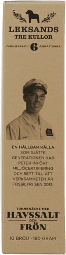 Sea salt and seeds are a craft-baked bread from Leksands Knäckebröd. The well-tasting natural ingredients and the water from their spring are the basis of this crisp bread. Tre Kullor breads are baked in a traditional bakery, where the dough is made by hand and then baked on plates in bakery ovens.