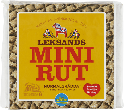 Mini Rut from LEKSANDS KNÄCKEBRÖD is baked according to an old family recipe with only natural ingredients: locally grown whole-grain rye and water from our own source. The dough is rolled with a unique rolling pin that creates a checkered pattern on the bread—a genuine pleasure since 1817.